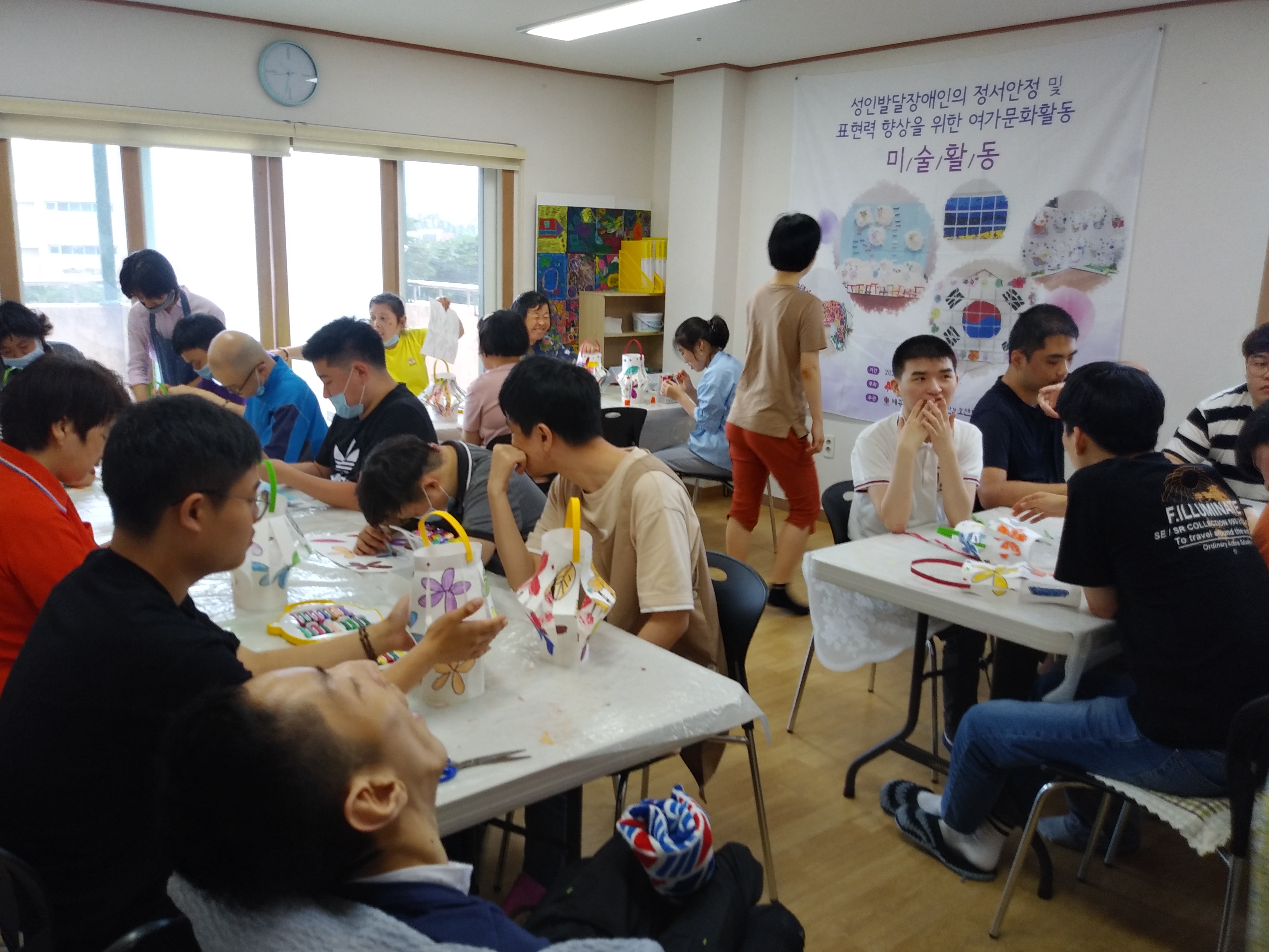 7월 9일 오전, 미술활동으로 다양한 꽃그림을 그려 채색을 한 후 종이 랜턴 만들기 활동을 하였습니다.