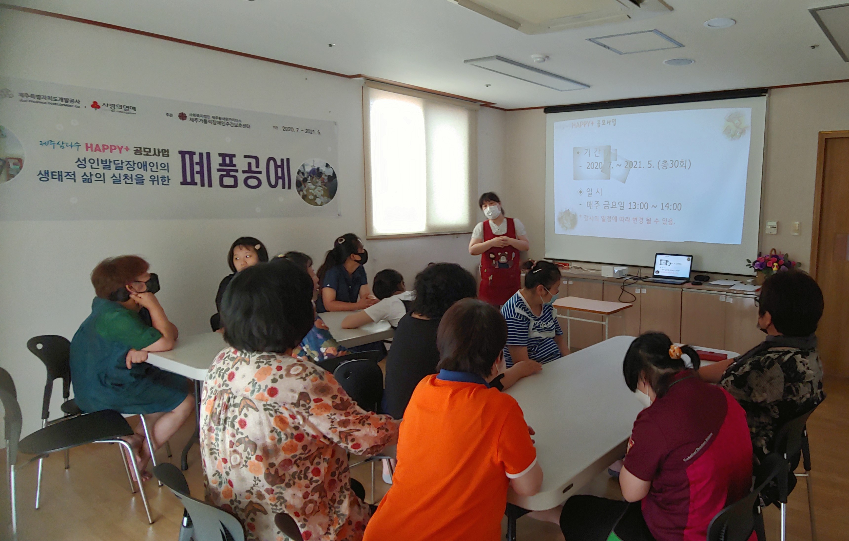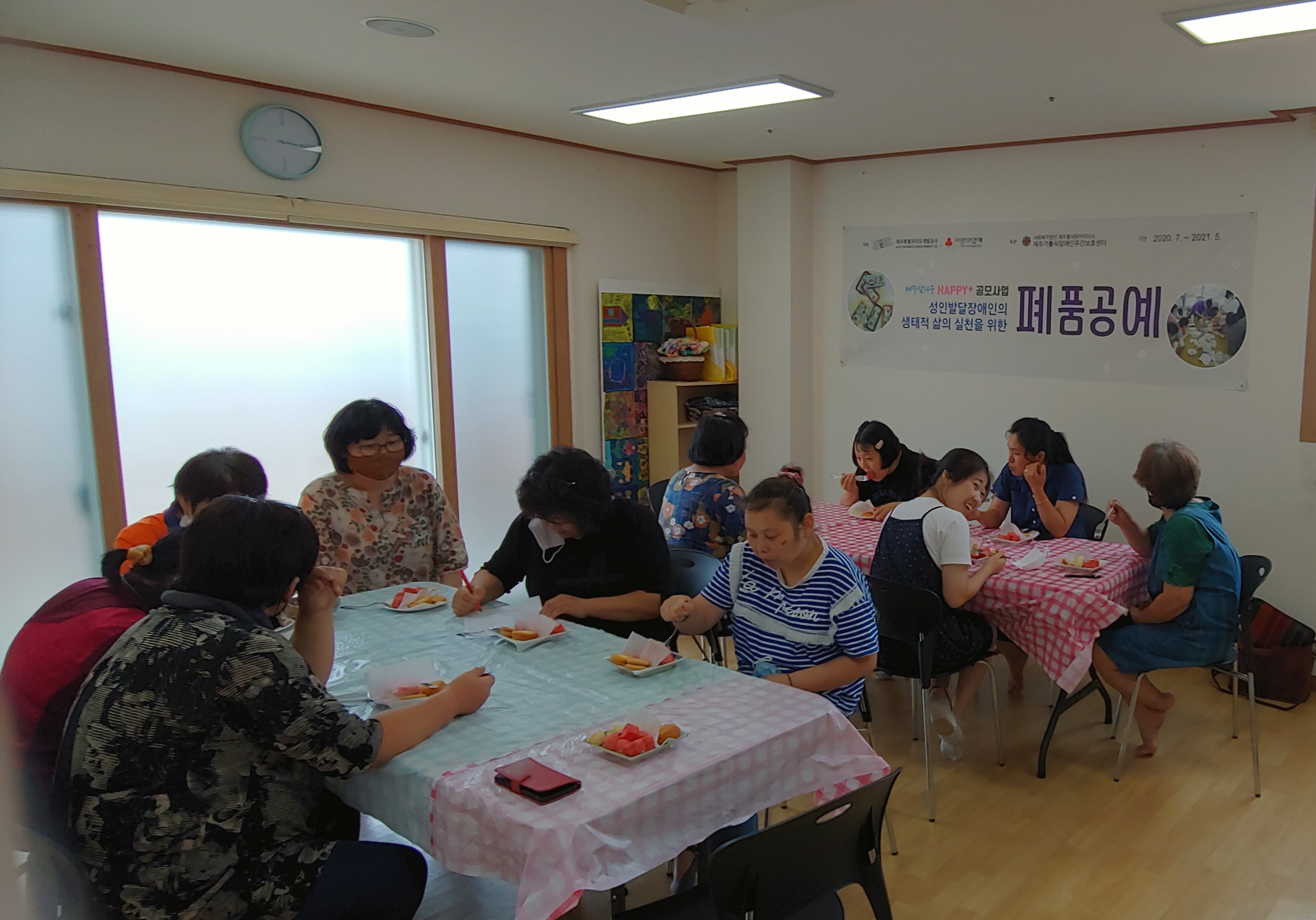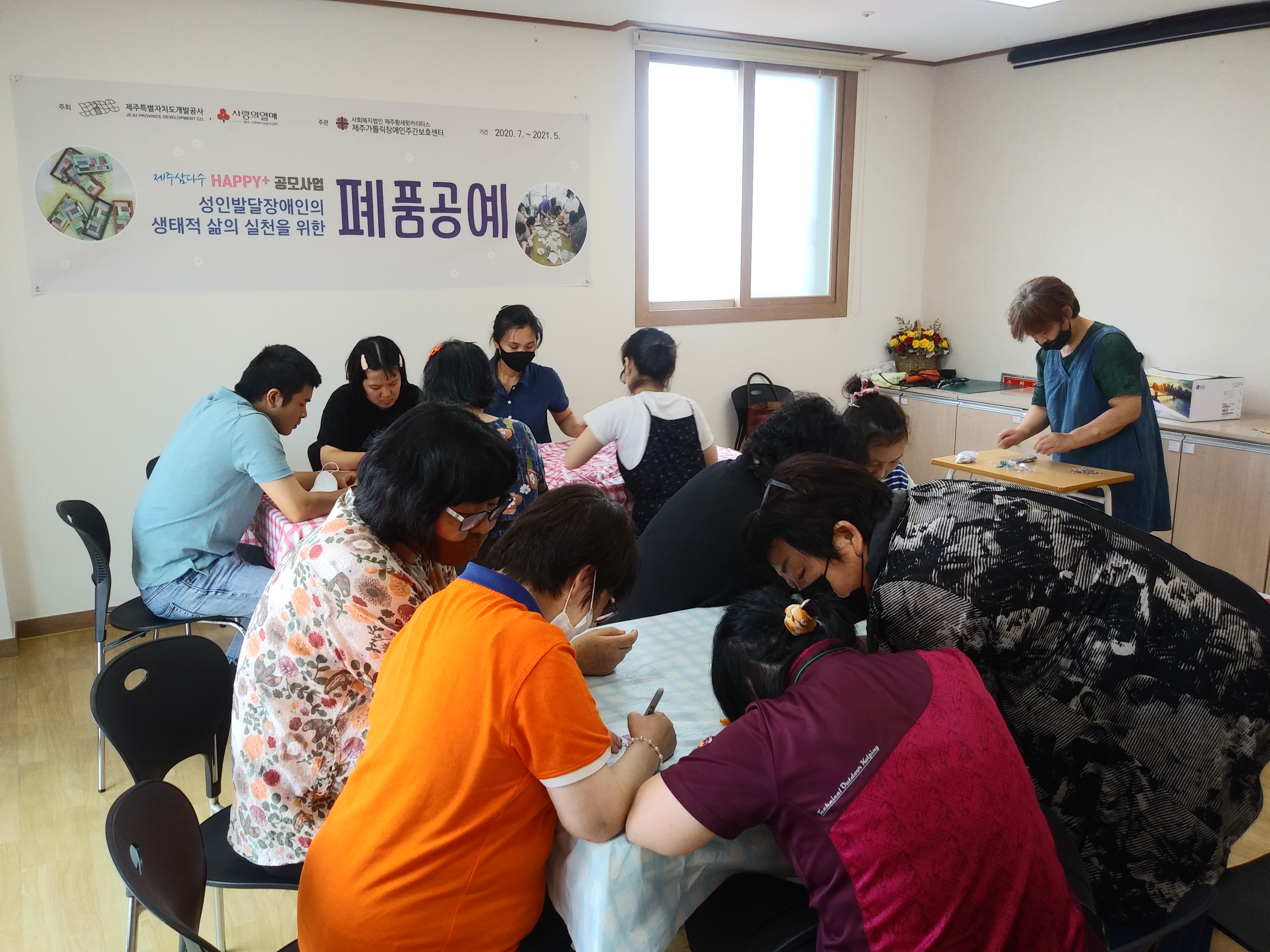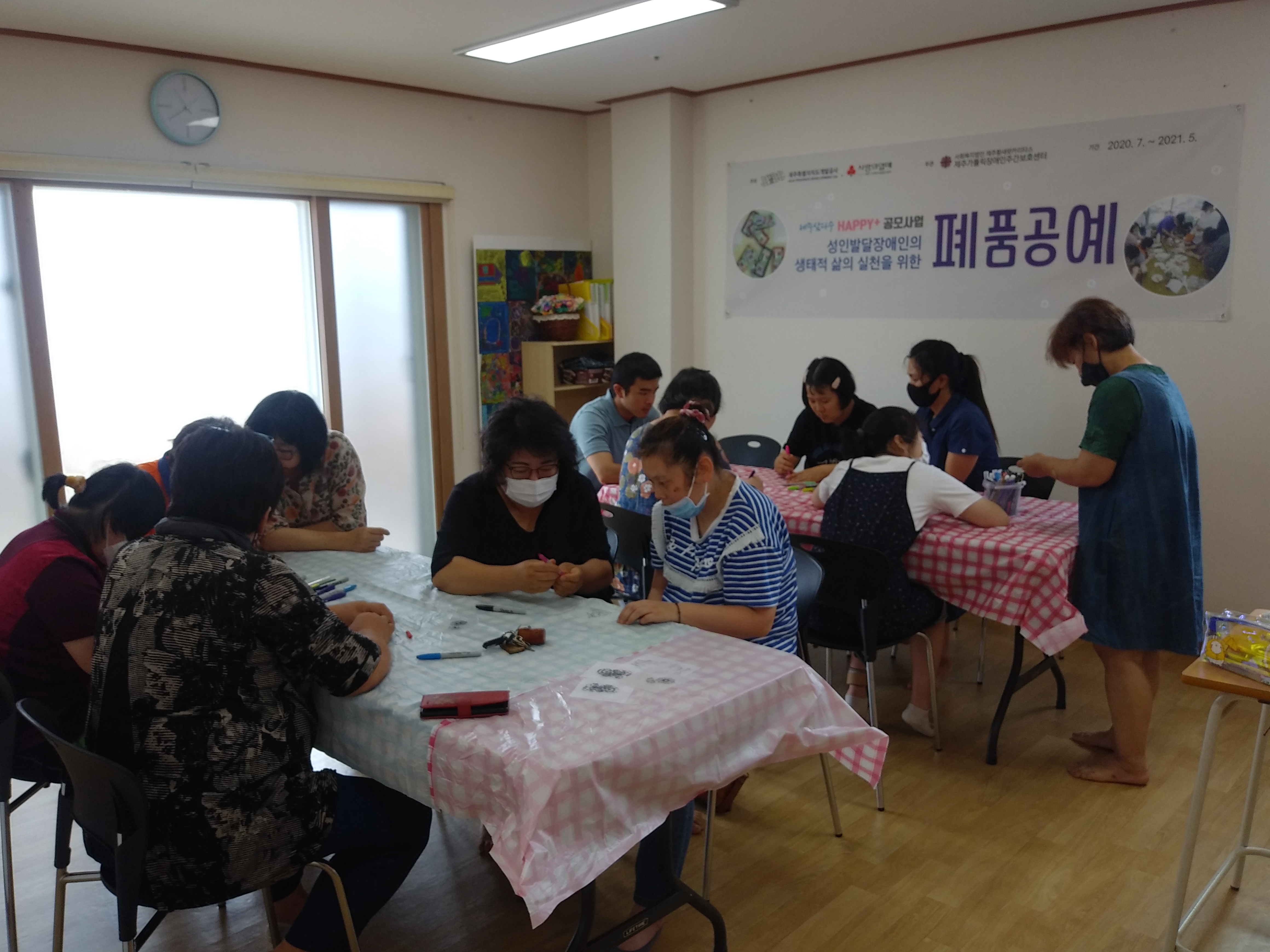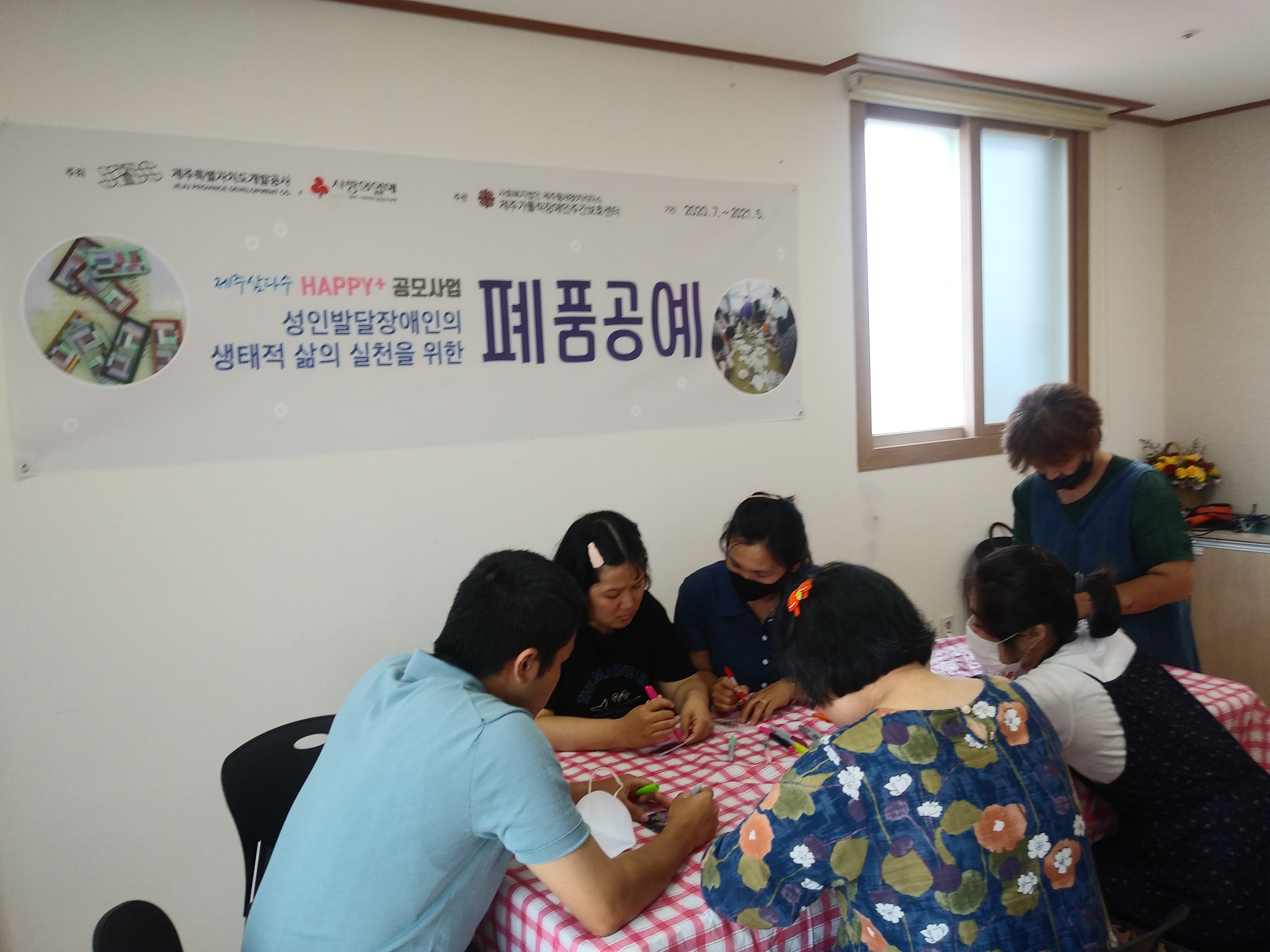 8월7일 오후, 삼다수Happy+공모사업 성인발달장애인의 생태적 삶의 실천을 위한 폐품공예 프로그램을 진행하였습니다.