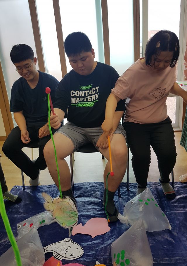 비닐봉지를 이용해 물고기를 만들었습니다.