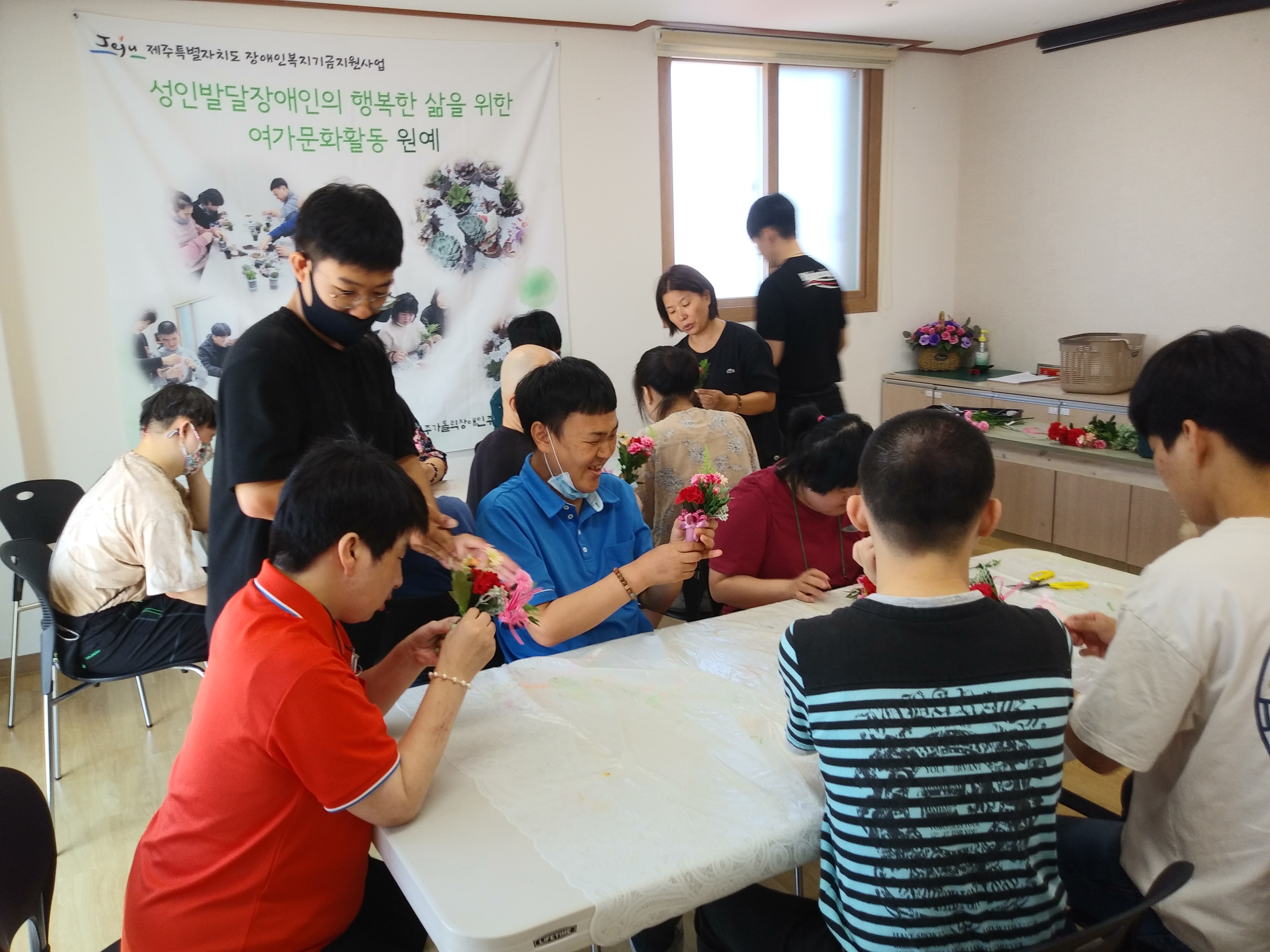 8월 24일 오전, 원예시간에 다양한 꽂으로 코사지 만들기 활동을 하였습니다.