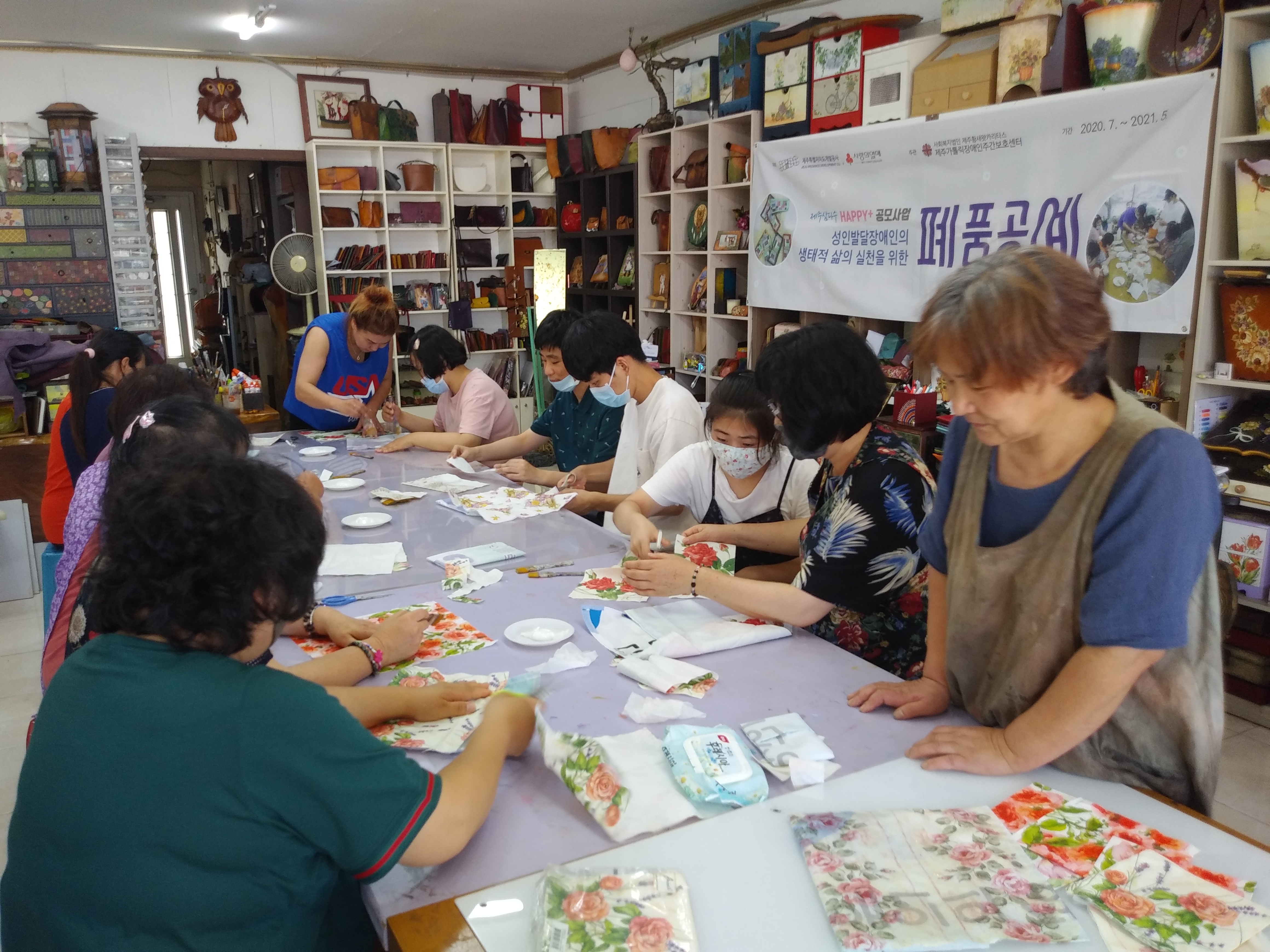 마감재까지 ~~지역주민참여자와 함께 각자의 개성이 드러난 파우치를 만들었습니다.