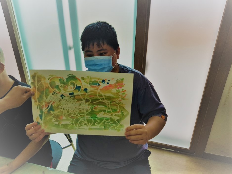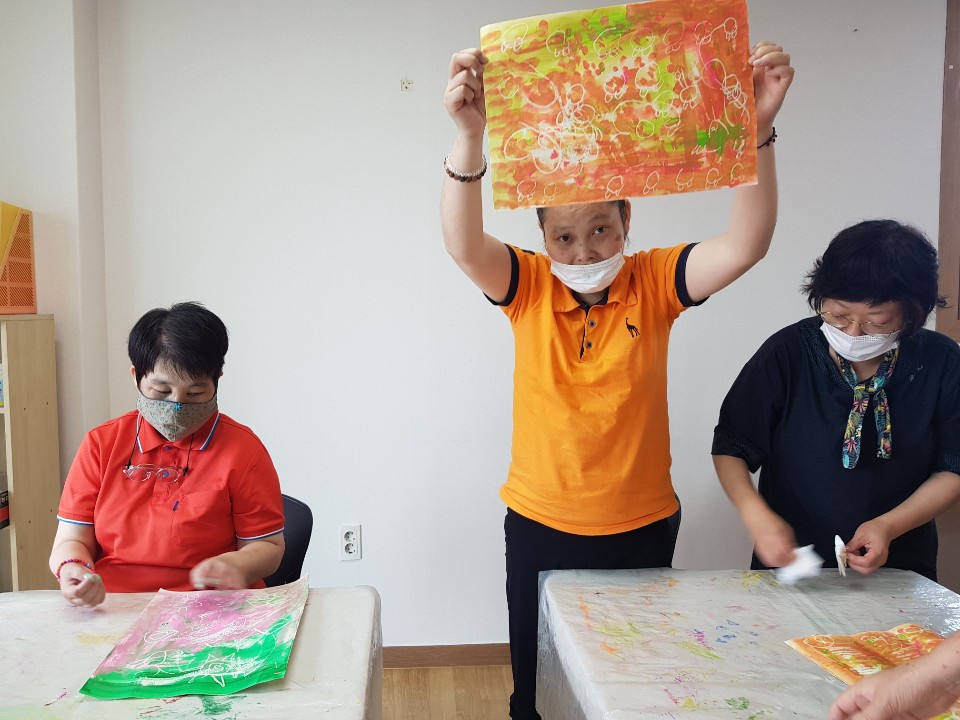 물감으로 채색을 했더니 해바라기, 하트, 나비 등 다양한 그림이 나타났습니다.