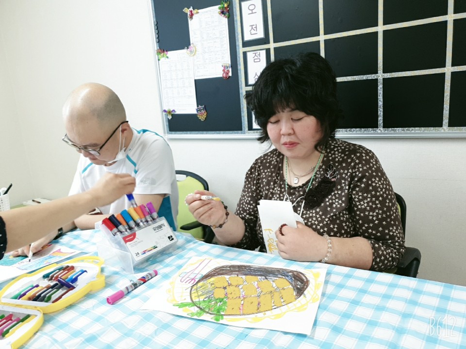 각 반에서 이용인들의 원하는 미술도구를 선택하여 그리고 싶은 그림을 그렸습니다.