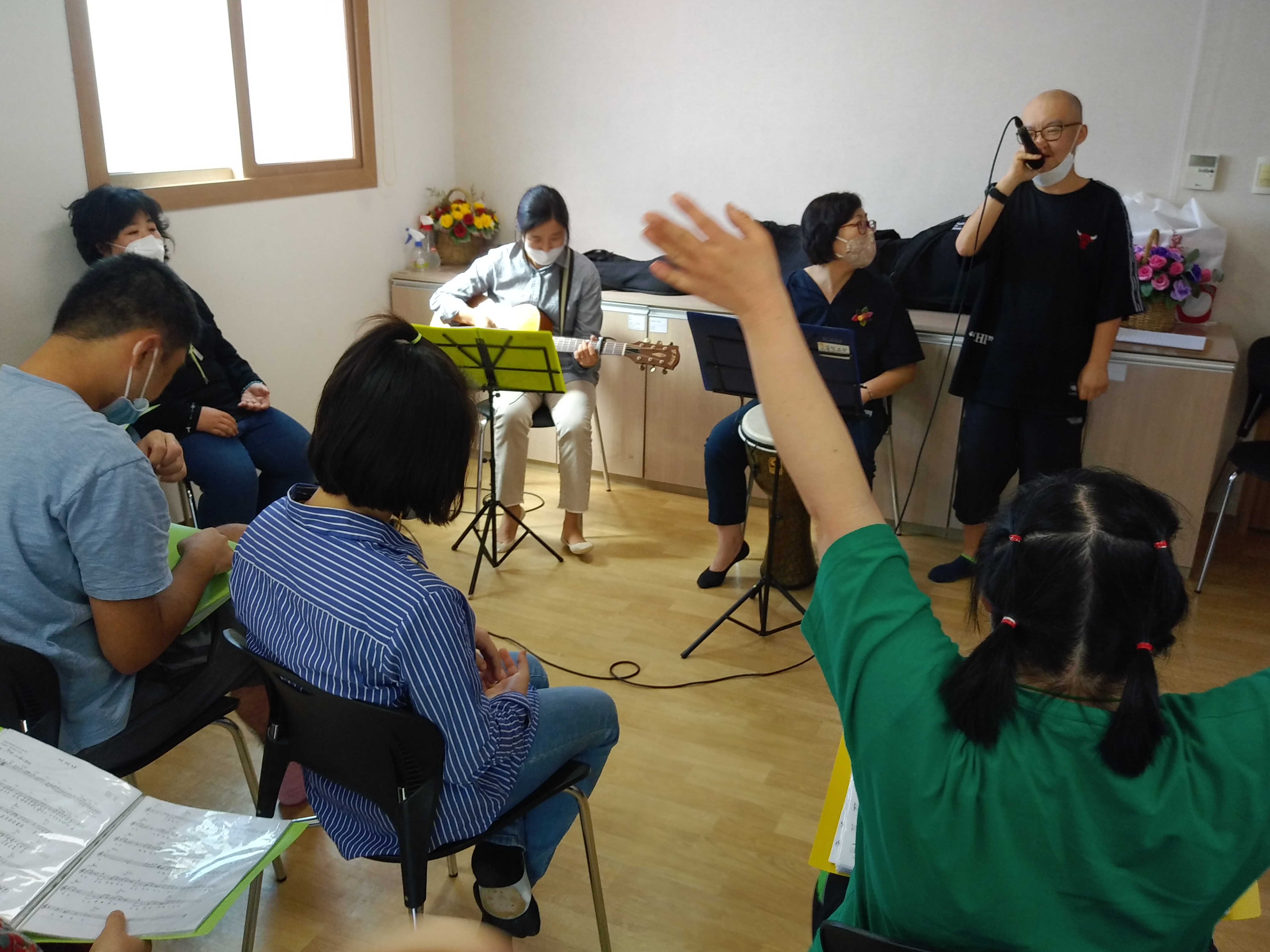 음악활동으로 끌림소리 강사님과 함께 노래 부르고 춤을 추며 즐거운 시간을 보냈습니다.
