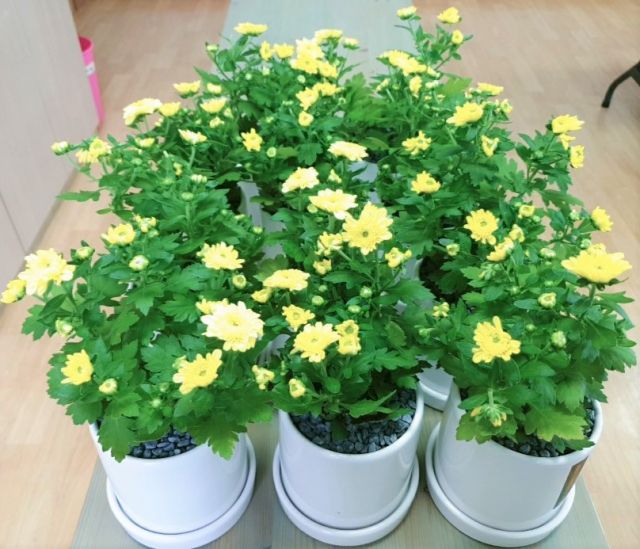 '노란색' '향기로워요~' 참여자들도 소국이 예쁜지 코 끝으로 가져가 향기를 맡고 웃음을 지었습니다.
