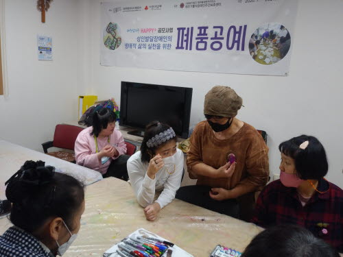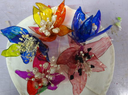 폐품공예로 삼다수병을 활용한 꽃브러치 만들기 활동을 하였습니다.