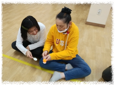 심리운동1으로 탁구공을 튕겨서 바구니에 넣기, 탁구공을 플라스틱컵으로 이동하기, 탁구공을 숟가락으로 옮기기등 다양한 놀이활동을 하였습니다.