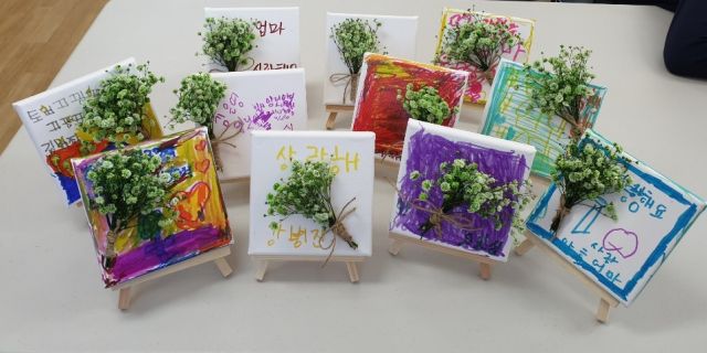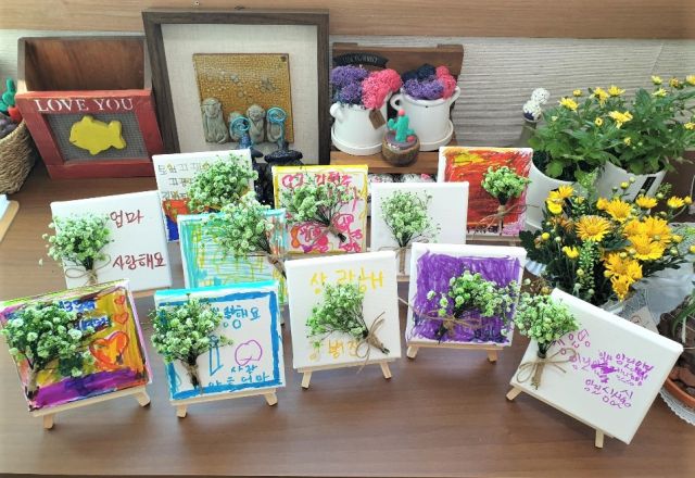 현주씨가 표현한 파란색 안개꽃이 '엄마 사랑해'와 어우러져 멋진 액자가 되었습니다.