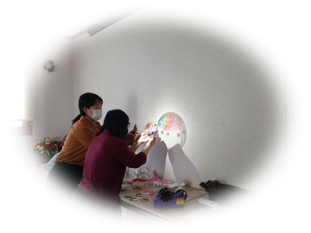 투명반구를 꾸미고 방울을 넣어 굴리며