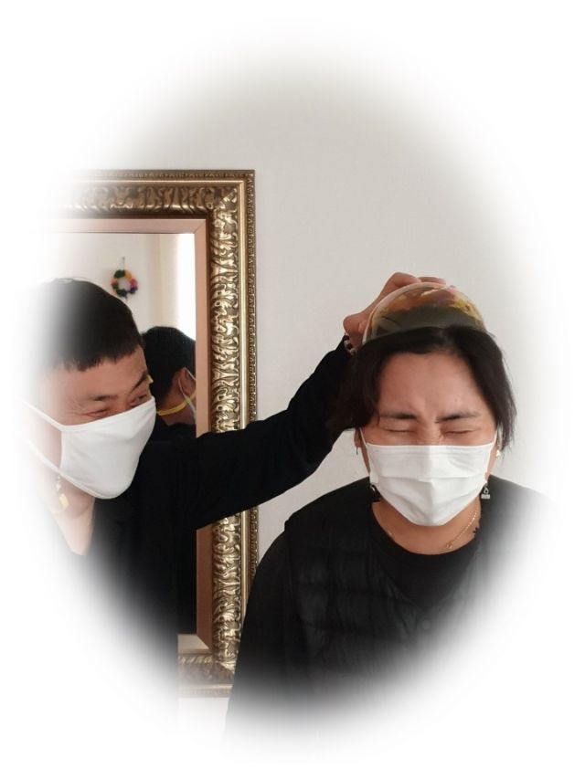 투명반구 모자도 만들어 씌워주었어요. 어때요?