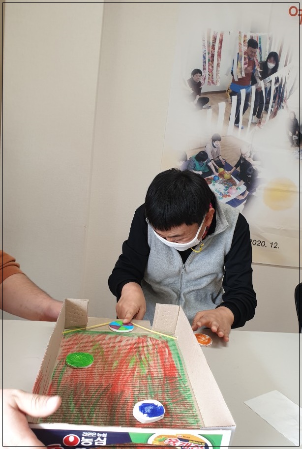 사발면 박스를 재활용해서 축구 운동장을 만들고