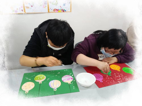미술활동으로 크리스마스 장식볼 만들기 활동을 하였습니다.
