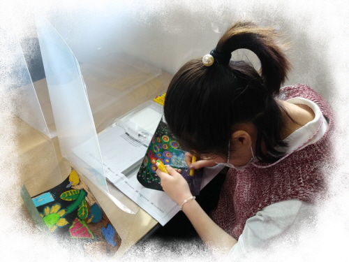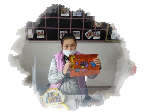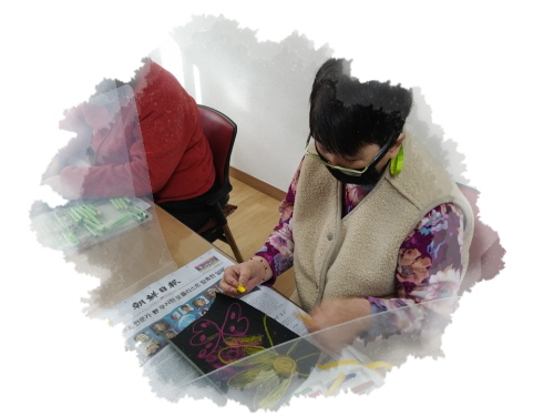 재능 키움 활동으로 켄트지나 표지 대신에 사포를 이용하여 그림을 그렸습니다.