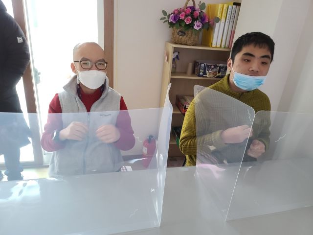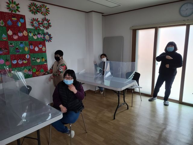 코로나19로 인해 가림막을 설치한 좌석에 앉아서 진행하였습니다.