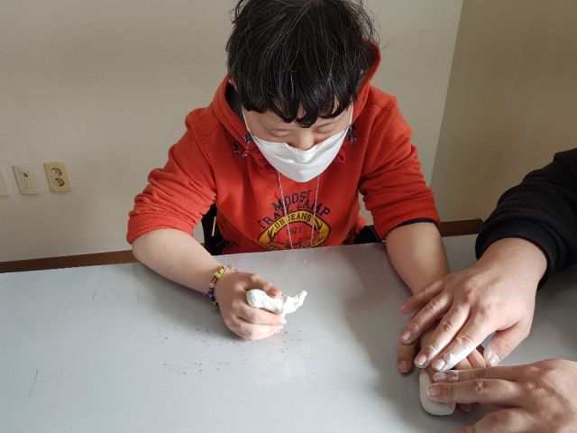 오감체험활동으로 지점토를 이용한 손도장찍기를 하였습니다.