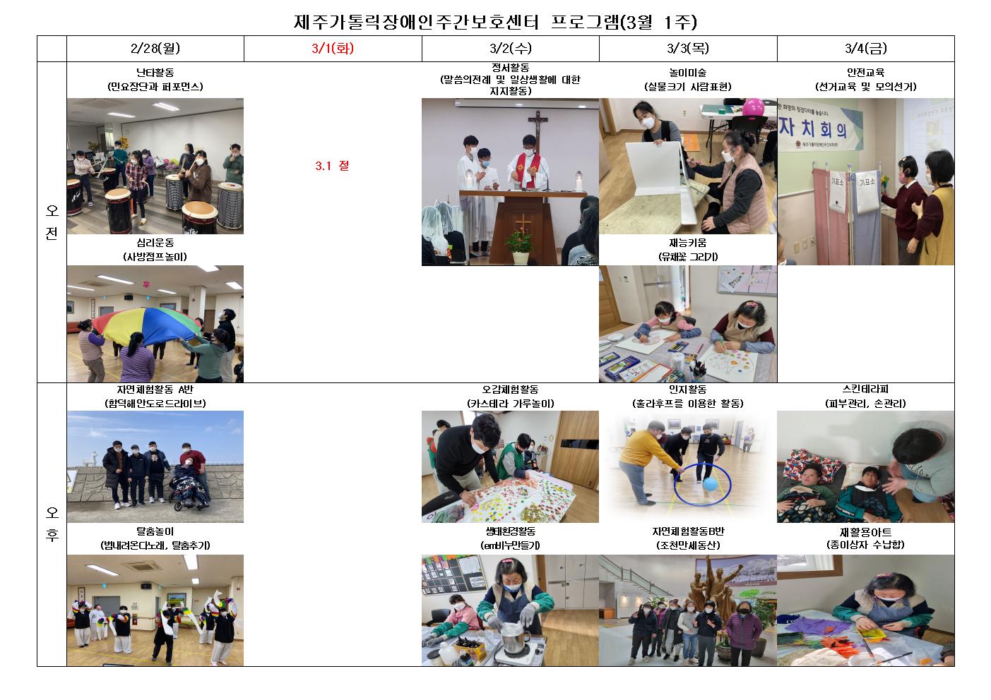 제주특별자치도 제주시 기와 5길 81, 3층(화북2동) ㅣ Tel.064)724-0999 ㅣ Fax.064)724-0998 대표자 : 문정신 ㅣ 사업자번호 : 616-82-23992 Copyright © 제주가톨릭장애인주간보호센터 All Rights Reserved.