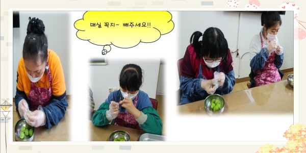 직업체험활동으로 매실을 이용한 청을 만들었습니다.