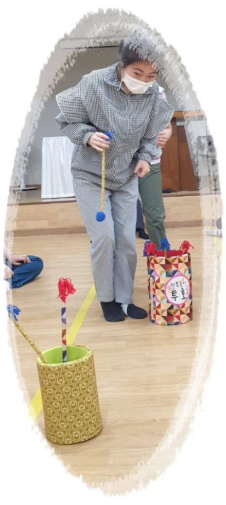투호 던지기 놀이에 장구를 돌아 다시 오는 게임을 연결해서 더 즐거운 활동이 되었습니다