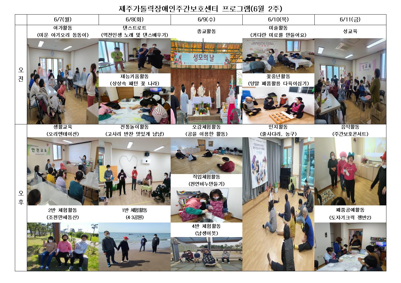 • 제목 제주가톨릭장애인주간보호센터 주간일정(6월 2주)