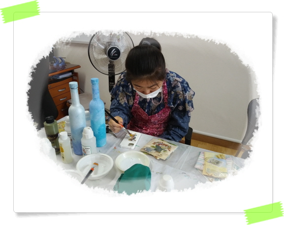 폐품공예활동으로 폐핸드폰케이스, 냅킨을 이용하여 예쁜 핸드폰케이스를 만들었습니다.