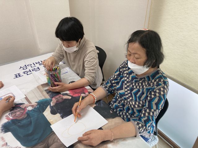 금일 여가활동 시간에는 이상한 크레파스 동화구연을 시청하고 이용인 분들이 가지고 싶은 물건이나 좋아하는 사람, 물건 등을 색연필을 이용하여 그려보는 시간을 가졌습니다.