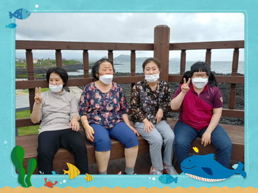 체험활동으로 조천해안도로를 드라이브도 하고 해안가 근처 정자에서 간식을 먹으며