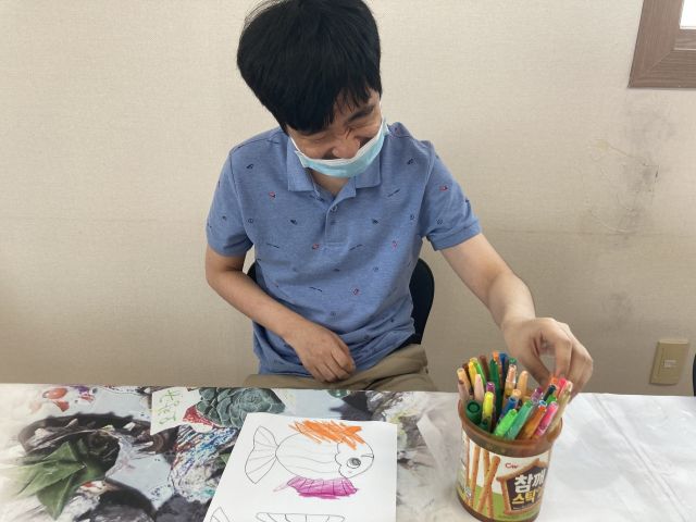 금일 여가활동 시간에는 감기 걸린 물고기 동화구연을 듣고 이용인분들이 직접 알록달록한 물고기를 꾸며본 후 클립과 자석을 이용하여 낚시 놀이를 하는 시간을 가졌습니다.