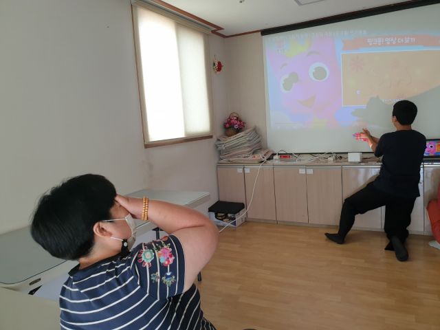 금일 오감체험활동 시간에는 그림자를 이용한 동요를 불러보고, 동화를 감상했습니다. 이용인분들이 새, 강아지 등 두 손을 사용하여 그림자 모양을 만들어보는 시간을 가졌습니다.
