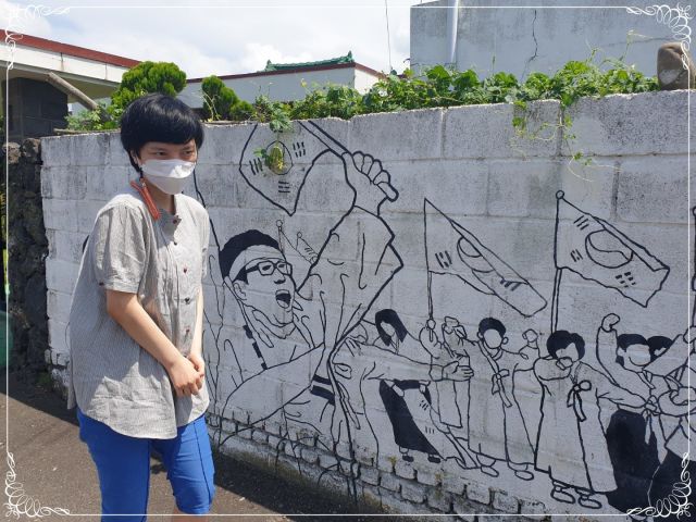 어느 집 울타리에 3.1운동 관련 페인팅이 되어 있어요. 그 옆에는 시원한 퐁낭이 있구요~