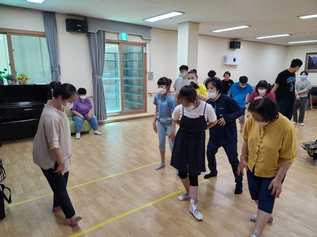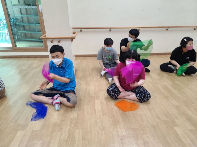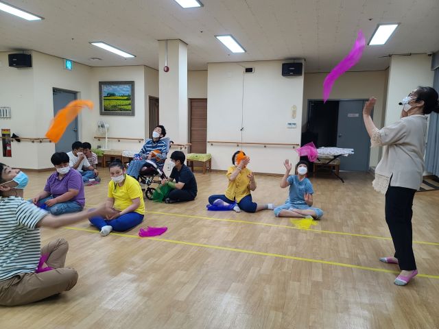 라인댄스를 배우고 다양한 색상의 스카프를 이용하여 활동하였습니다.
