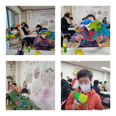미술활동, 옷걸이를 이용한 리스만들기 활동 진행하였습니다.