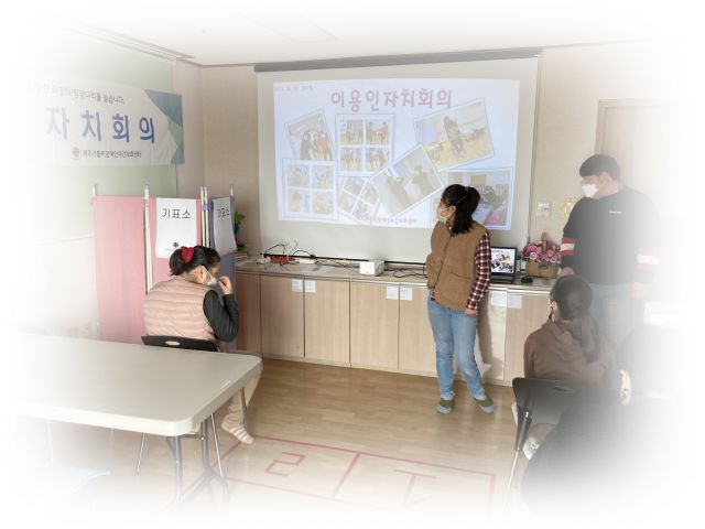 이용인자치회의를 진행하였습니다.회의 내용은 2022년도 이용인자치회장 선출이며