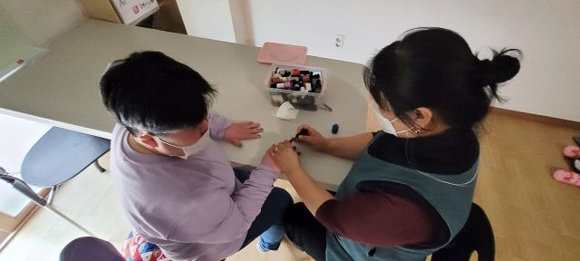보습크림으로 얼굴과 손, 피부보습을 유지할 수 있도록 하였으며 손톱위생관리, 네일아트 실시하였습니다