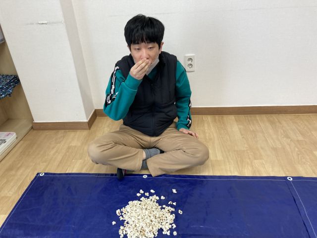 금일 오감체험활동으로 팝콘을 이용하여 만져보고 냄새를 맡아보고 맛을 느껴보며 소감을 말하고 다양한 게임을 해보고 팝콘을 뭉쳐 높게 던져보며 눈이 오는 상상을 해보며 즐거운 시간을 보냈습니다.