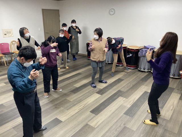 한손, 양손, 작게, 점점 크게 등 다양한 리듬과 음악에 맞춰 난타활동하였습니다.