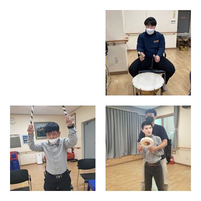 전통놀이활동, 개고리개골청 소고연주와 소고 제기차기 활동 진행하였습니다.