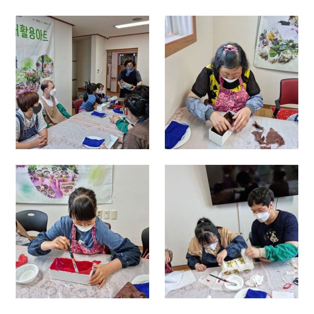 재활용아트시간에 박카스 상자 등을 활용하여 사각바구니를 만들었습니다.