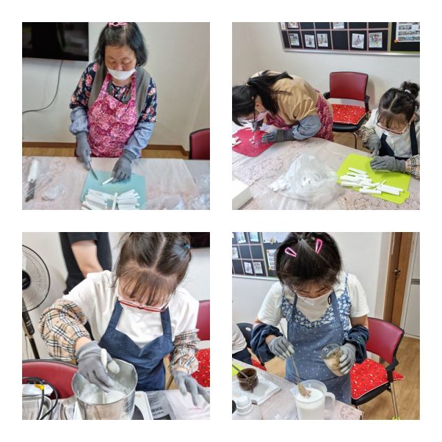 생태환경활동으로 em발효액과 천연오일, 어성초 가루를 이용하여 em비누와원두찌꺼기와 베이킹파우더 등을 활용하여