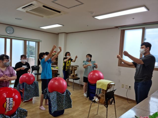 금일 '난타활동-짐볼을 이용한 난타'는 원내에서 진행하였습니다.
