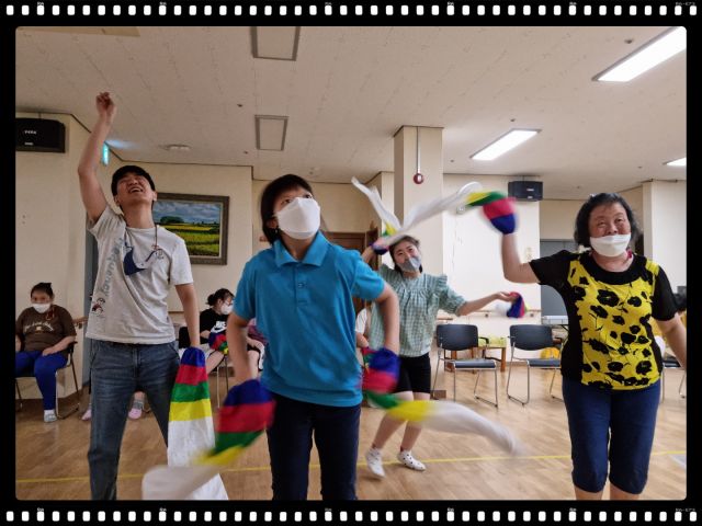 탈춤놀이활동으로 뷰티풀코리아와 탈춤놀이 노래 등에 맞춰 탈춤추기를 하였습니다.,