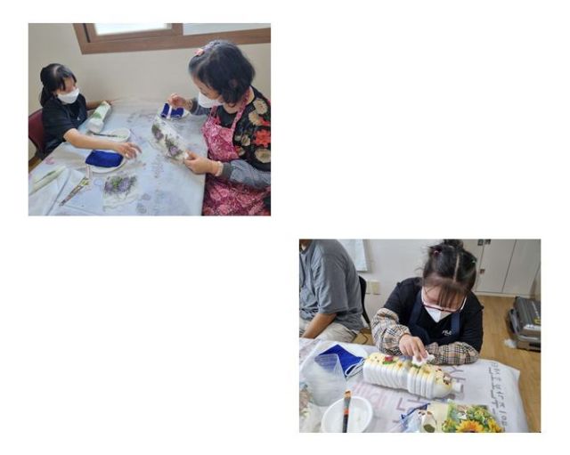 재활용아트활동으로 삼다수pt병과 냅킨, 물감등을 활용하여 화분만들기를 하였습니다.