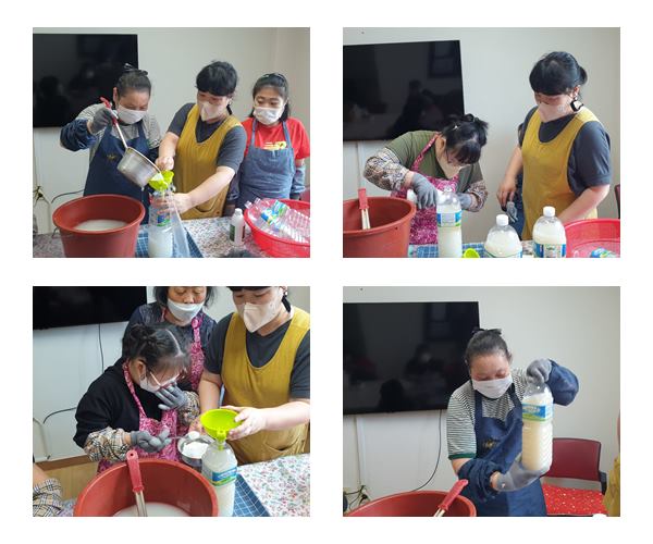 생태환경활동으로 em원액과 어성초, 천연재료, 쌀뜨물 등 이용하여 em비누와em발효액을 만들었습니다.