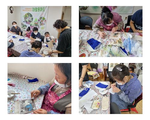재활용아트활동으로 가정에서 사용하지 않는 지갑이나 크로스 가방을 리폼하였습니다.