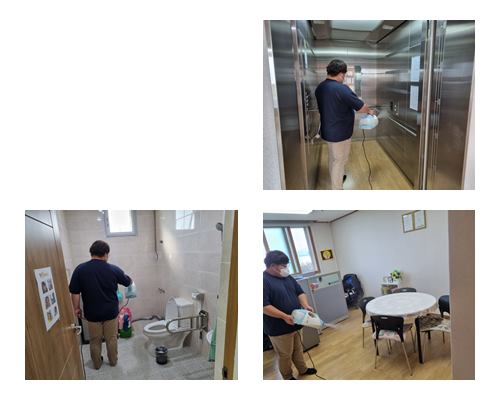 센터 내 교실, 화장실, 승강기, 사무실 등 소독을 하였습니다.