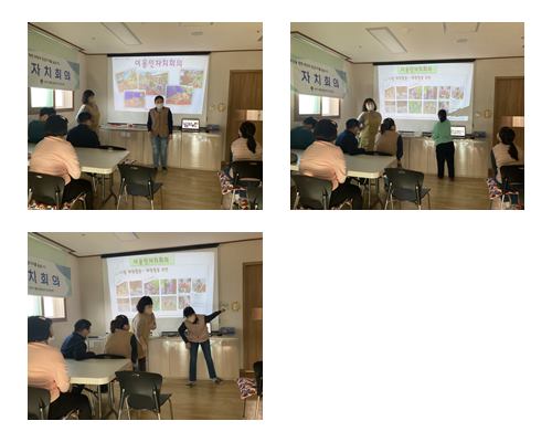 이용인자치회의시간에 주간일정안내 및 각반체험활동 및 12월 체험장소 안내, 11월 환경사랑 실천내용과 12월 환경사랑실천에 대해 의견을 나누고 2023년 회장 후보자 선출 등을 하였습니다.