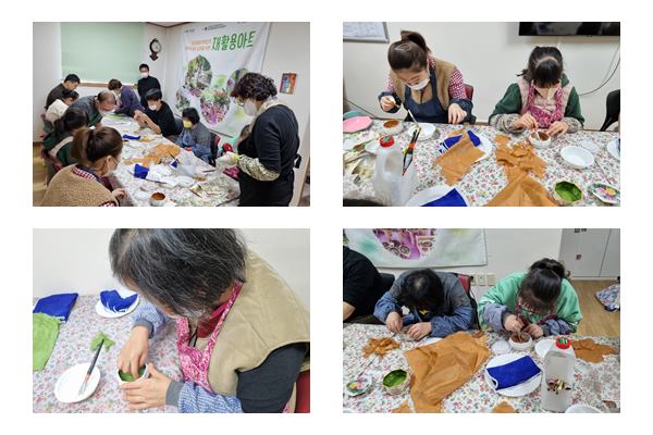 한지와 냅킨으로 미니항아리를 만들었습니다.