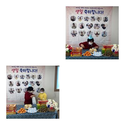 생일을 맞이한 이용인을 위해 이용인들과 함께 생일카드와 생일파티를 준비하였습니다.