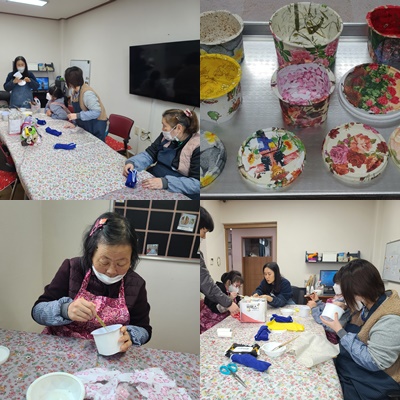 금일 생활공예 ( 재활용공예-요플레저금툥)진행하였습니다.