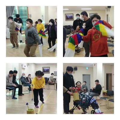 탈춤놀이로 노들강변 노래에 맞춰 탈춤추기, 제기차기, 투호던지기를 하였습니다.