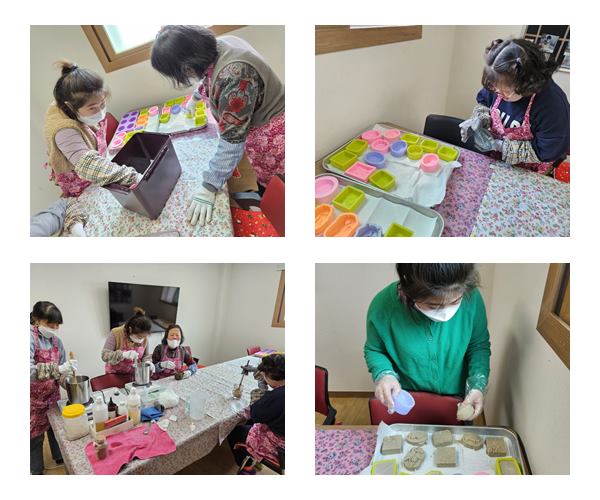 생태환경활동으로 em발효액과 천연오일과 어성초 가루를 활용하여 비누 만들기를 하였습니다.